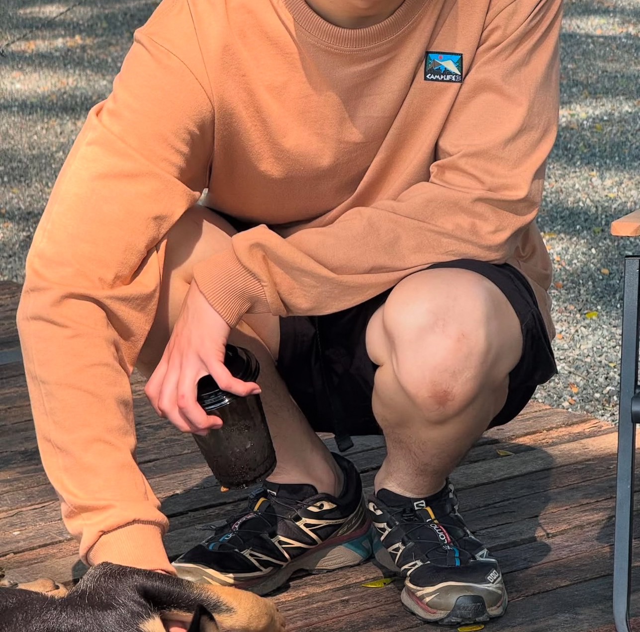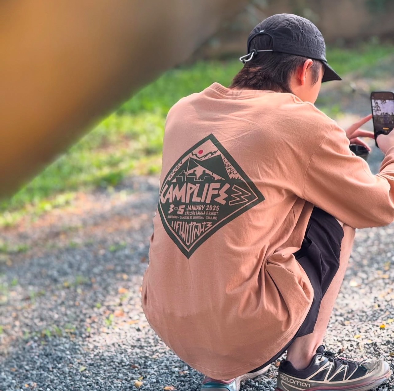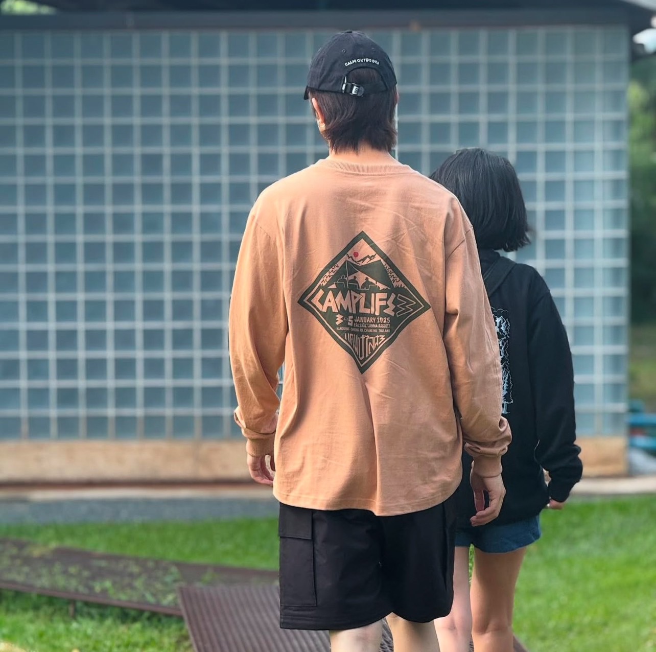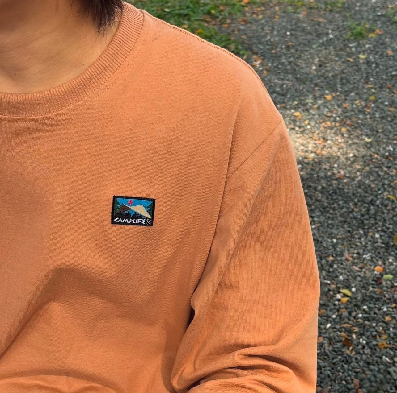 The front has a woven camplife3 logo. The back has a logo printed on the fabric. Comfortable to the touch. The fabric is made from thick C16 cotton, not too soft. The collar and sleeve cuffs are made from thick ribbed fabric.