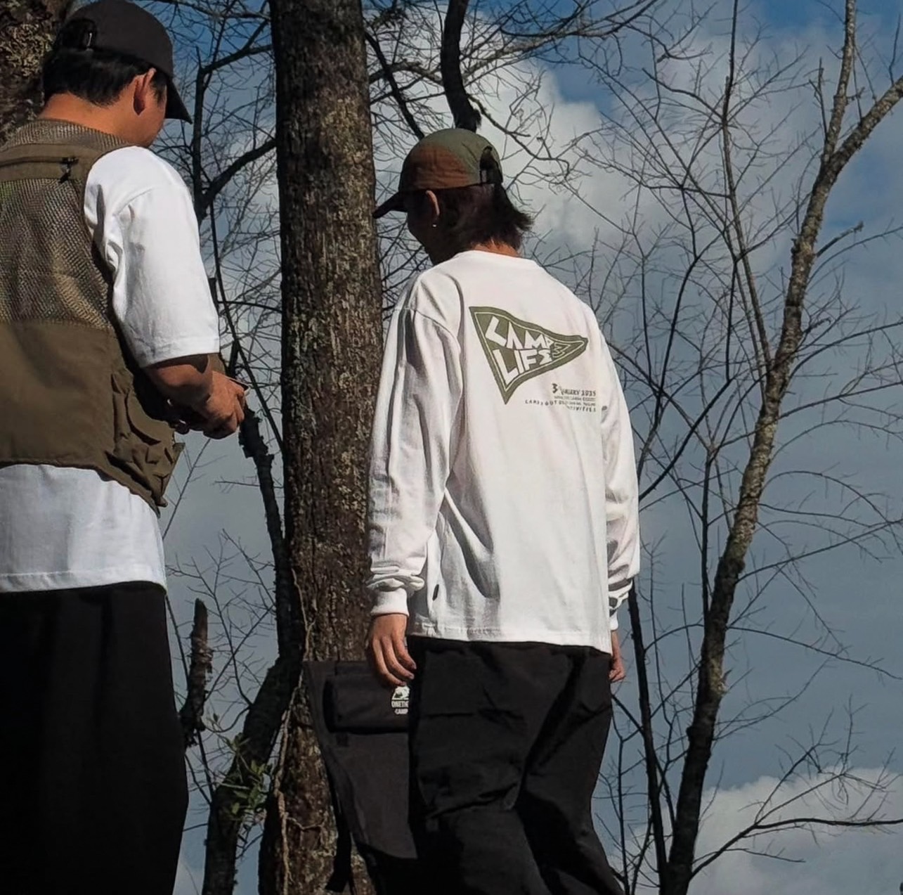Long-sleeved straight-cut shirt with elastic sleeves and loose hem. Special collection produced for camplife3 camp&outdoor activities.