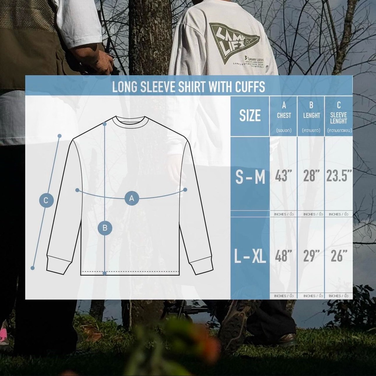 01. LONG SLEEVE SHIRT CAMPLIFE3 ( SEPIA COLOR ) เสื้อแขนยาวทรงตรงจั๊มแขน ชายเสื้อปล่อย คอลแลคชั่นพิเศษที่ผลิตมาในงาน camplife3 camp&outdoor activities ด้านหน้ามีโลโก้ป้ายทอ camplife3 ด้านหลังพิมพ์ลายโลโก้ลงบนเนื้อผ้า สัมผัสสบาย เนื้อผ้าผลิตจากผ้าคอตตอน C16 เนื้อหนา ไม่นิ่มมาก คอเสื้อและจั๊มแขน จะเป็นผ้าร่องหนา